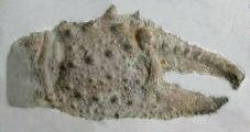 Malacostracans are primarily represented by lobsters (Macrura) and occasional crabs (Brachyura) and water-lice (Isopoda) in the British Chalk. Good malacostracan fossils are scarcely encountered by the collector, and museum collections are dominated by isolated chelipeds (pincers) of Palaeastacus from the Grey Chalk, and isolated crab carapaces from the Grey Chalk-equivalent sandy facies of SW England. Most other species are rarely seen, and complete and articulated specimens are highly unusual. Small, isolated dactyls, probably assignable to the Brachyura, may be found with reasonable frequency in the Grey Chalk, though their size makes them quite inconspicuous. (Terminology).