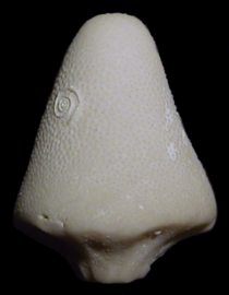 1). Typical ossicles of the central disc; (A) An elongate cone with a bulbous apex, note the crinkled and granular surface texture (x3.8, Kent, BMNH (British Museum (Natural History) London) E2564); (B) A low cone with an adherent serpulid worm tube (x6.5, Hope Gap, Lewes Nodular Chalk Formation (Beeding Beds), Randell Collection RR 1472). Image A © 2005 The Natural History Museum, by kind permission.