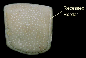 1). Typical marginal ossicles (x7); (A) Crateraster quinqueloba, no border is present; (B) Metopaster parkinsoni, a well defined border is present.