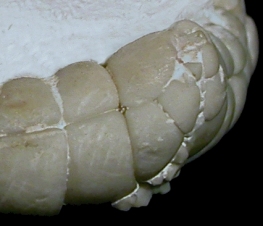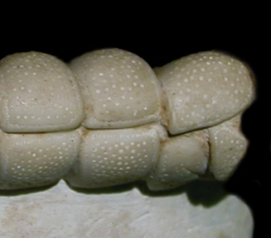 The two most commonly encountered Asteroid taxa in the British Chalk are Metopaster (e.g. Metopaster parkinsoni) and Crateraster (e.g. Crateraster quinqueloba). They are superficially very similar, most complete individual being small, with poorly developed and slightly upturned arms and a robust marginal frame. However, on closer inspection the two genera can be easily distinguished. Firstly the marginal ossicles of Metopaster have a distinct ornament; a raised central area, creating a recessed border around the margin of the ossicle. This central area is of highly variable width, but is usually quite consistent for any one individual. Secondly, the arm tips of Metopaster have an enlarged ultimate superomarginal, with several corresponding inferomarginals. Crateraster has an equal number of superomarginals and inferomarginals, and the ossicles have no border.