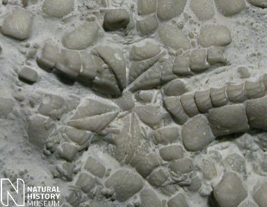 8). Detail of the oral surface of a very well preserved individual whose mouth angle plates are still articulated (x5.0, White Chalk, SE England, BMNH (British Museum (Natural History) London) E2582. Image © 2005 The Natural History Museum, by kind permission.