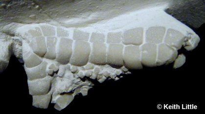 14). Aboral view of a part of a well preserved juvenile (Newhaven Chalk, Palm Bay, Thanet Coast, Kent, x10.0, in the collection of Keith Little). Image © 2010 Keith Little, by kind permission.