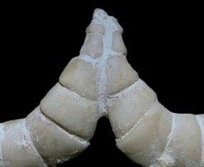 10). Semi-complete specimen from the Seaford Chalk of Beachy Head, East Sussex, (András Zboray Collection): (A) Oral view of the specimen, x2.0; (B) Lateral view showing excellent articulation of arm-tips, oral surface down, x2.0. Images © 2010 András Zboray of www.fjexpeditions.com, by kind permission.