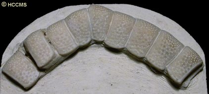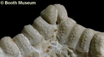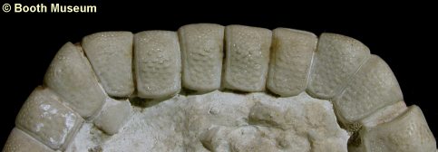 5). Detail of a relatively small individual with angular arm-tips and superomarginals ornamented by a few pronounced rugosites and no obvious pits (x5, White Chalk, Willett collection, Booth Museum, BMB 007824, by kind permission of John Cooper).