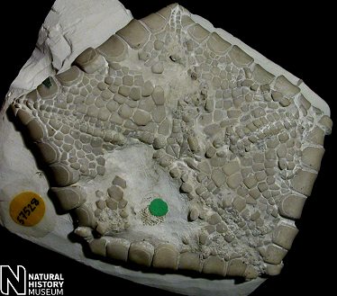 2). Oral views of two exceptionally preserved specimens, note that the inferomarginal ossicles are smooth except for the recessed border, and that the groove present on the superomarginals is absent; (A) x1.5, Bromley, Kent, BMNH (British Museum (Natural History) London) 57528; (B) x1.8, BMNH 46772. Images © 2005 The Natural History Museum, by kind permission.