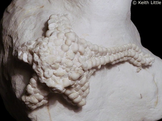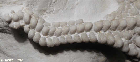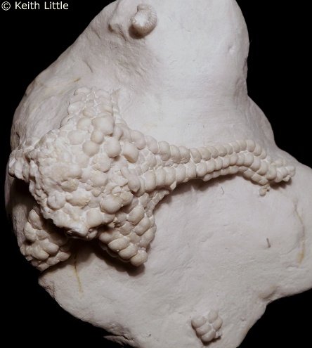 7). Stauranderaster cf. boysii - A pelleted (?) example exposing the oral surface of an articulated arm (x3.6, Seaford Chalk, Thanet Coast, Kent, in the collection of Keith Little). Image © 2012 Keith Little, by kind permission.