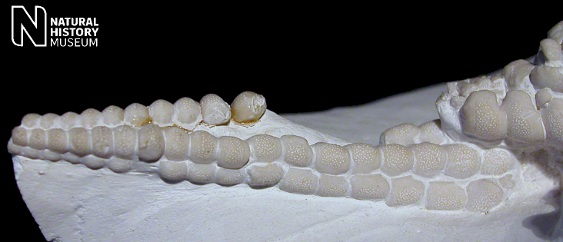 6). Stauranderaster boysii - side view of the arm from the above specimen (x3, White Chalk, Bromley, Kent, Simmons Collection, BMNH (British Museum (Natural History) London) 46600). Image © 2012 The Natural History Museum, by kind permission.