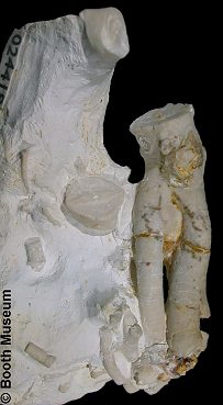 4). Bourgueticrinus sp., well preserved root networks; (A) x1.8, Gravesend, Kent, Beckles Collection, BMNH (British Museum (Natural History) London) E6042; (B) x1.8, Booth Museum, BMB 024418, by kind permission of John Cooper. Image A © 2005 The Natural History Museum, by kind permission.