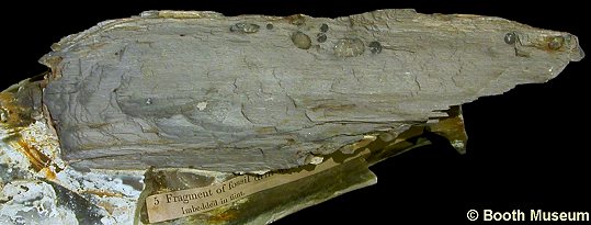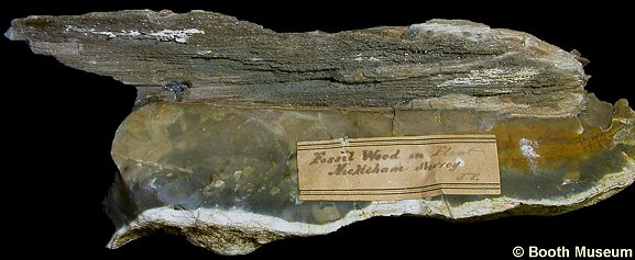 1). A strongly petrified chunk of wood enclosed within flint; the grain is quite clear (x0.8, flint (White Chalk), from drift material, Nickleham, Surrey, Willett Collection, Booth Museum, BMB 008196, by kind permission of John Cooper).