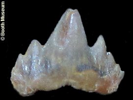 1). Representative isolated microscopic Orectolobiform teeth: (A) Orectoloboides sp., x50, Albian, Gault Clay of Folkestone, David Ward Collection; (B) Orectoloboides parvulus, x53, Albian, Gault Clay of Folkestone; (C) Plicatoscyllium sp., x9.3, Norwick, Willett Collection, Booth Museum, BMB 007317, by kind permission of John Cooper. Images (A, B) by kind permission of David Ward. See also www.gaultammonite.co.uk [Fossils of the Gault Clay].