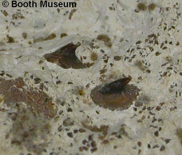 The skin of sharks is armoured with small dermal denticles formed from dentine, known as placoid scales. These are of varying size and density, forming a scaly cover in some taxa, and a thorny defensive ornament in others. These have good preservation potential, but are relatively uncommon in Chalk collections, perhaps due to their typically small to microscopic size.
