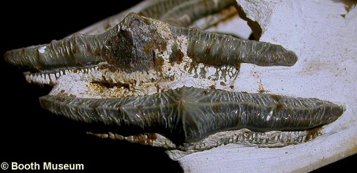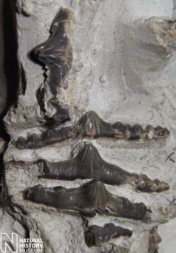4). Polyacrodus illingworthi; Detail of an exceptionally rare association of teeth (x4.1, Grey Chalk, England, NHMUK (British Museum (Natural History) London) PV P43511). Image © 2012 The Natural History Museum, by kind permission.