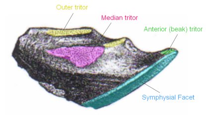 The form of the dental plates and arrangement of the tritors, particularly for the mandibulars, is commonly used to classify fossil remains. Dental plate form is highly variable within species, and classification is based on general characters.