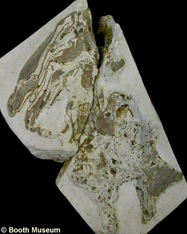 9). Squatina cranei; details of the type specimen figured above (Figure 2) showing the calcified formerly cartilaginous left upper jaw broken open to reveal the 'cellular' structure (x5).