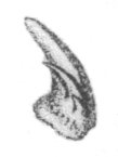 20). Paraorthacodus recurvus; (A) Lingual and (B) side views of an isolated tooth (x3.0, Zig Zag Chalk, Norwich, NMHUK (British Museum (Natural History) London) PV P48953). Images (A, B) taken from Woodward (1902-1912, Plate XLVI, figures 8 and 8a respectively.