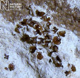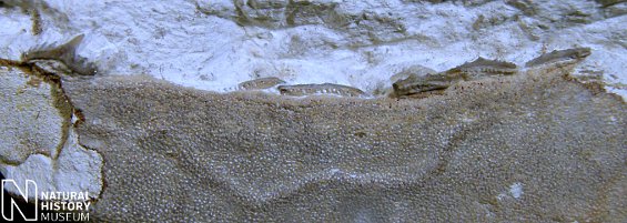 12). Synechodus dubrisiensis: Detail of an exceptionally preserved specimen retaining dermal denticles (x15.0, Grey Chalk, Dover, Kent, NHMUK (British Museum (Natural History) London) PV P47287). Image © 2011 The Natural History Museum, by kind permission.