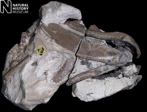 7). Synechodus dubrisiensis - (A) left and (B) right lateral views of the specimen displaying three-dimensional preservation of cartilaginous skeletal elements of the jaws with teeth retained in-situ; (A, B x2.5, Chalk, Kent, NHMUK (British Museum (Natural History) London) PV P41675. Images © 2011 The Natural History Museum, by kind permission.