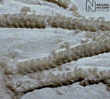 7). Ophiotitanos serrata, detail of the large specimen in Fig. 6 (Bromley, Kent, x2.0, BMNH (British Museum (Natural History) London) E5052). Image © 2005 The Natural History Museum, by kind permission.
