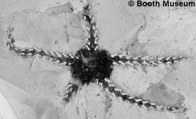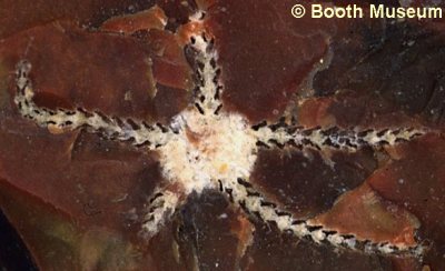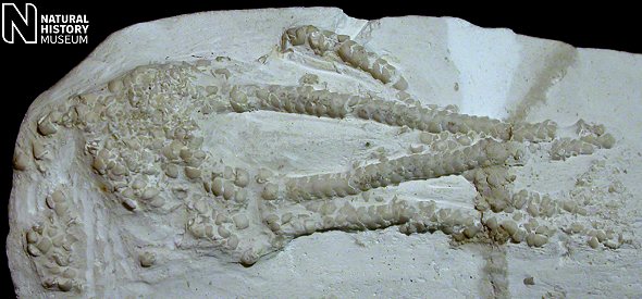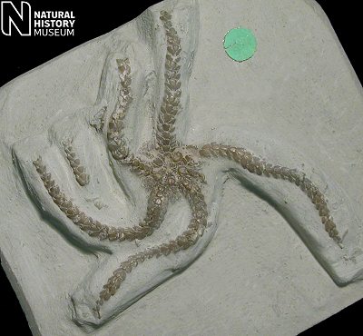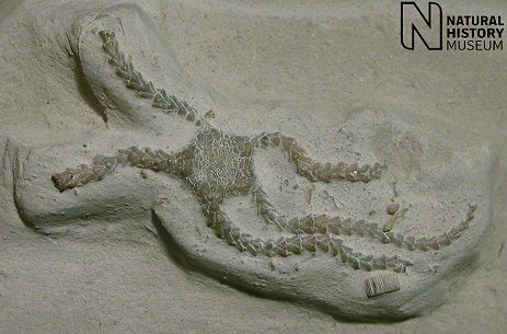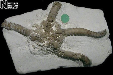 2). Ophiotitanos serrata, ventral view of a very well preserved individual, x2.6 (White Chalk, Dixon Collection, BMNH (British Museum (Natural History) London) E5043. Image © 2005 The Natural History Museum, by kind permission).
