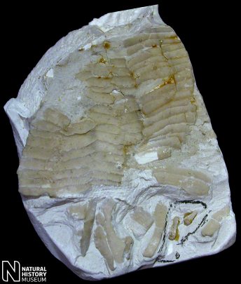 2). Articulated segments of the adapical surface of the test; (A) Paralectotype (x2.3, 'Senonian', Higham, near Rochester, BMNH (British Museum (Natural History) London) 40376; (B) Segment with an ambulacral column and partial apical disc (x3.0, Seaford Chalk, Gillingham, Kent, BMNH 82389. Images © 2008 The Natural History Museum, by kind permission.