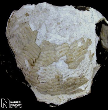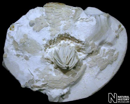 3). Details of the lectotype in figure 1B, showing the unique, intact, articulated and three-dimensional Aristotle's lantern; (A) Adoral view, exhibiting peristomal plating around the lantern (x4.0); (B) Lateral view (x5.0). Images © 2008 The Natural History Museum, by kind permission.