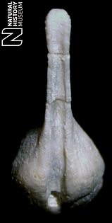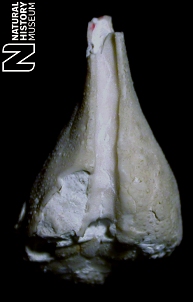 2). (A)(B) Hagenowia blackmorei; near complete test viewed (A) from the front and (B) from the side. H. blackmorei is distinguished from H. anterior by its more vertical, periscope-like rostrum and by its swollen anterior profile at the base of the rostrum (bottom-left of (B)). From a practical point of view, H. blackmorei is restricted to the Campanian whilst H. anterior is most common in the Santonian. (A)(B) x3.5, Campanian, East Harnham, near Salisbury, Wiltshire, Blackmore Collection, BMNH (British Museum (Natural History) London) E33911. (C) Hagenowia cf. anterior, x2.8, Dixon Collection, BMNH 30826. Images © 2005 The Natural History Museum, by kind permission.