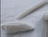 6). The Aristotle's Lantern. Each pyramid is formed of two hemi-pyramids which support an elongate tooth. A lantern is comprised of five pyramids, five teeth, and a number of smaller structures. (A) Recent example of an Aristotle's Lantern (jaw apparatus), x2.5. The membrane of the peristome through which the teeth projected is still attached. (B) View of the beak-like tip of another recent lantern, x2.5. (C) Two fossil hemi-pyramids from the lantern of Tylocidaris clavigera (x2.5), and (D) a hemi-pyramid and a tooth from Hirudocidaris hirudo (x2.5).