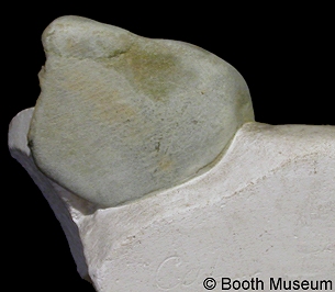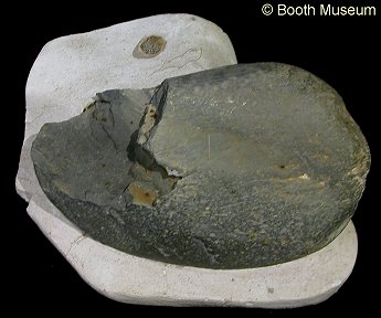 3). This angular pebble is unlikely to have been a gastrolith and may have been rafted out to sea in tree roots instead (x3.7, Grey Chalk, Lewes, Willett Collection, Booth Museum, BMB 008216, by kind permission of John Cooper).