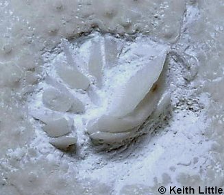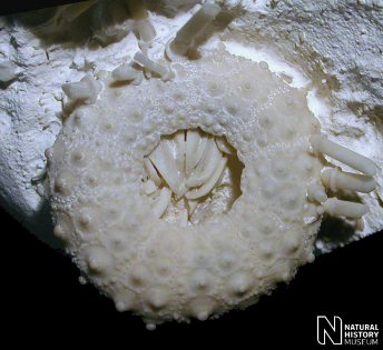 10). Adoral view of an exceptionally preserved individual (x3.5, White Chalk, Seaford Chalk, Micheldever, Hampshire, BMNH (British Museum (Natural History) London) E35841. Image © 2008 The Natural History Museum, by kind permission.