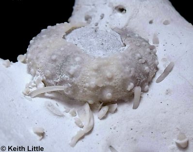 7). Adoral views of a rare specimen retaining a largely articulated lantern (Seaford Chalk, Thanet Coast, Kent, in the collection of Keith Little): (A) General view (x3.5); (B) Detail of peristome and lantern (x8.0). Images © 2010 Keith Little, by kind permission.