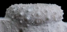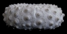 Lateral (side) views of three complete tests. The primary tubercles of Phymosoma koenigii (A)(x2) are relatively much larger than those of (B)(x4) Gautheria spatulifera and (C)(x4.5) Gautheria radiata.