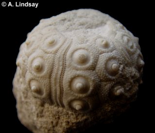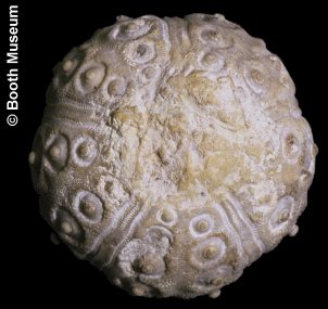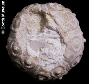 3). A seemingly unique specimen - a large test retaining a large and partially articulated lantern; (A) Apical and (B) oral views (x1.7, White Chalk?, Devon(?), Booth Museum, by kind permission of John Cooper).