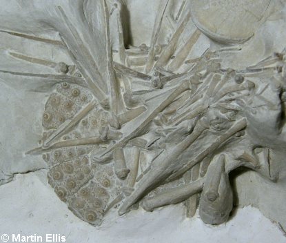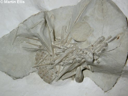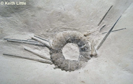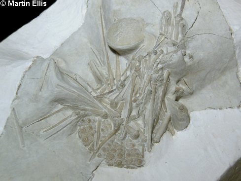 5). Adapical view of a recently collected specimen retaining a large compliment of spines and other skeletal elements (x1.5, Grey Chalk, near Cow Gap, Eastbourne (from the collection of Martin Ellis, image used by kind permission).